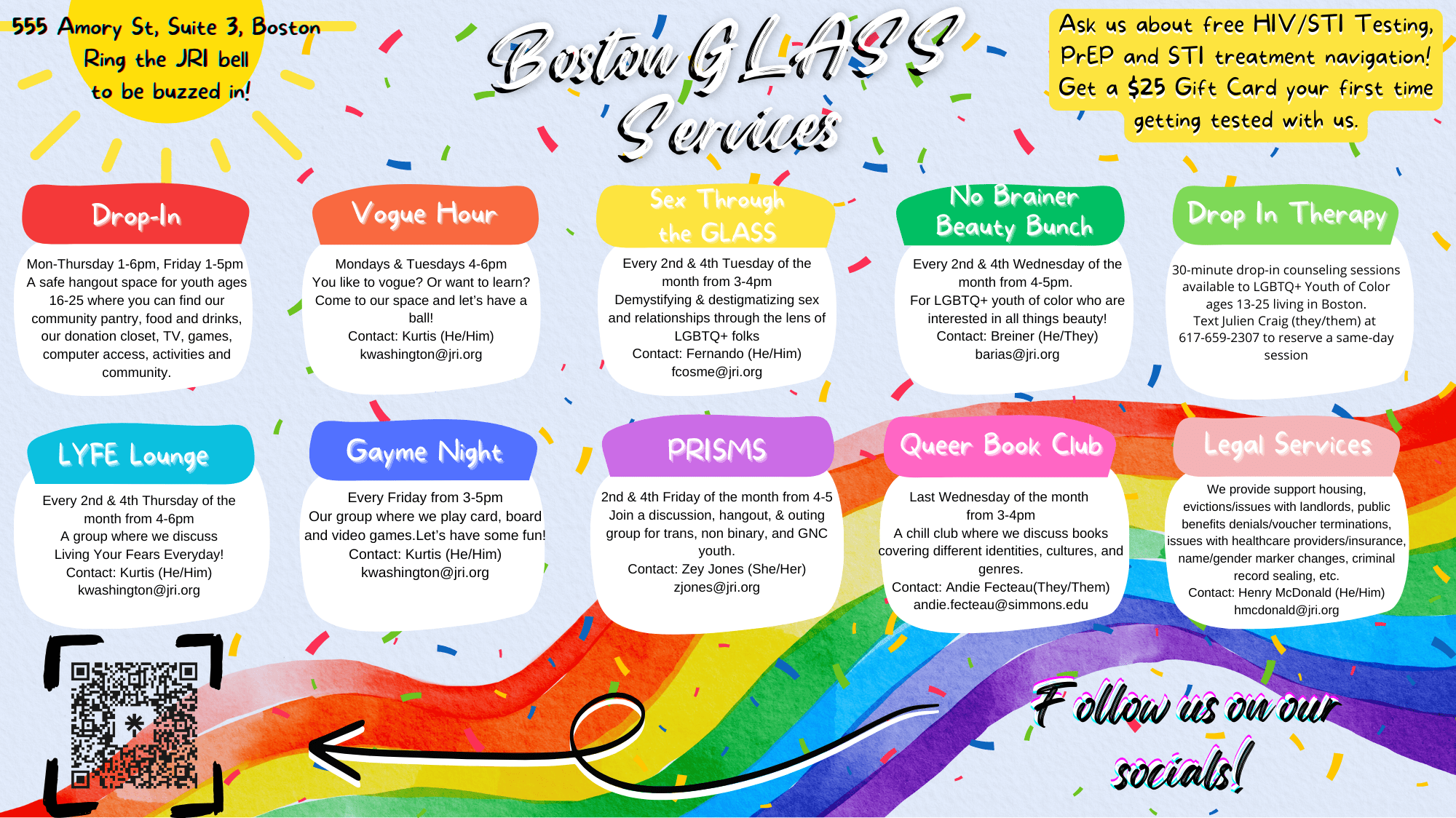 GLASS extends its HIV/STI testing and counseling services to community partners through a mobile team that travels to events and organizations around Boston and Framingham. We also offer cultural competency workshops on topics relevant to the LGBTQ+ youth community, tailored to your needs and available on a sliding scale.