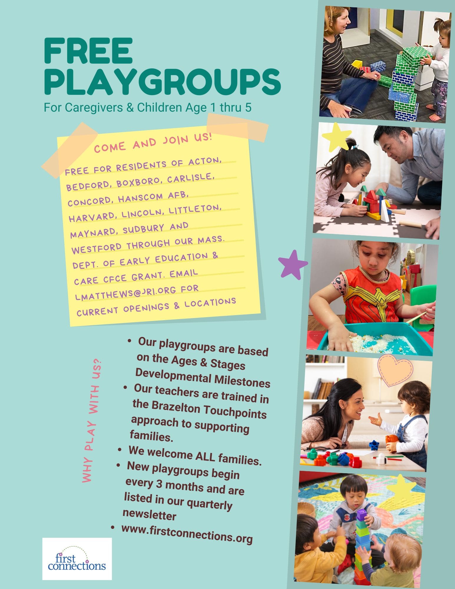 We offer free family support services and resources for parents with young children in Acton, Bedford, Boxborough, Carlisle, Concord, Harvard, Hanscom Air Force Base, Littleton, Lincoln, Maynard, Sudbury, and Westford. To register, click here.